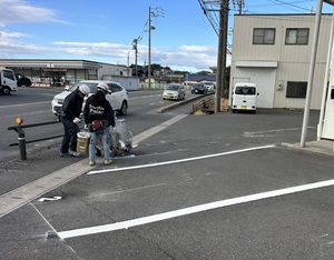 1階店舗付きコーポの駐車場白線工事を行いました。