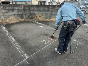 1階店舗付きコーポの駐車場白線工事を行いました。